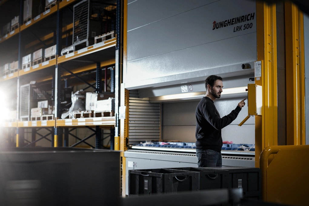 Vertikalni sustav za podizanje omogućuje skladištenje visoke gustoće na maloj površini, bilo u proizvodnji ili skladištu. Idealan je za fleksibilnost u radu s često promjenjivom robom, uz održavanje visoke produktivnosti. Zatvoreni sustav sastoji se od ladica pohranjenih vertikalno s obje strane, ekstraktora i upravljačke jedinice koja isporučuje robu na ergonomski postavljen otvor za uslugu. Čak i dok se komisionira jedna ladica, ekstraktor već priprema sljedeću, kako bi se minimizirali vremenski gubici. Velike brzine, minimalno vrijeme čekanja i savršeno rukovanje ladicama garantiraju optimalnu komisionersku učinkovitost. Jungheinrich Logistics Interface služi kao sučelje s vašim softverom za upravljanje skladištem, omogućujući jednostavno povezivanje vertikalnog sustava podizanja s postojećim sustavima.
